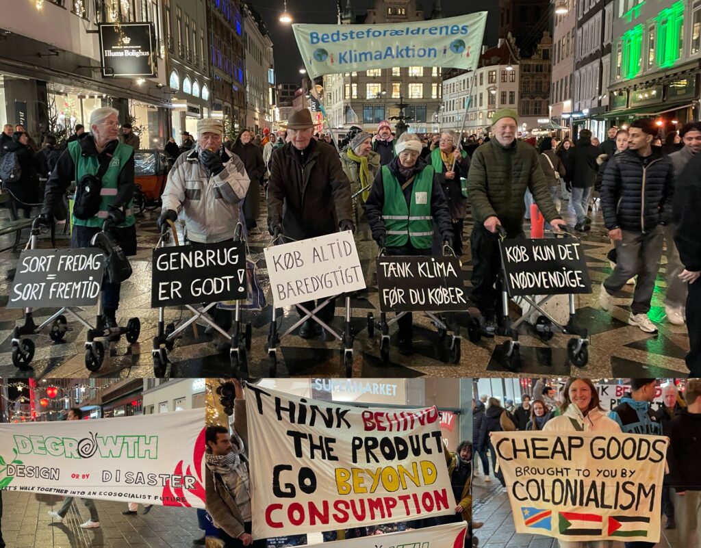 Rollator demo på Strøget i København – med Klimaorkestret, og et uventet møde med de seje unge fra DeGrowth